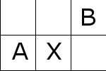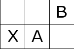 最後から2番目のタイルをA、最後のタイルをB、空のタイルをXとする。