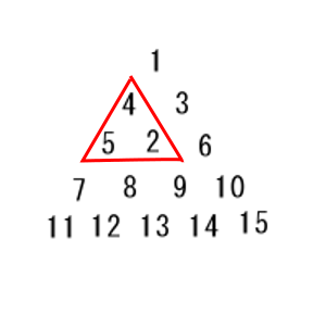 図のように三角形上に数を並べた配置を考える。